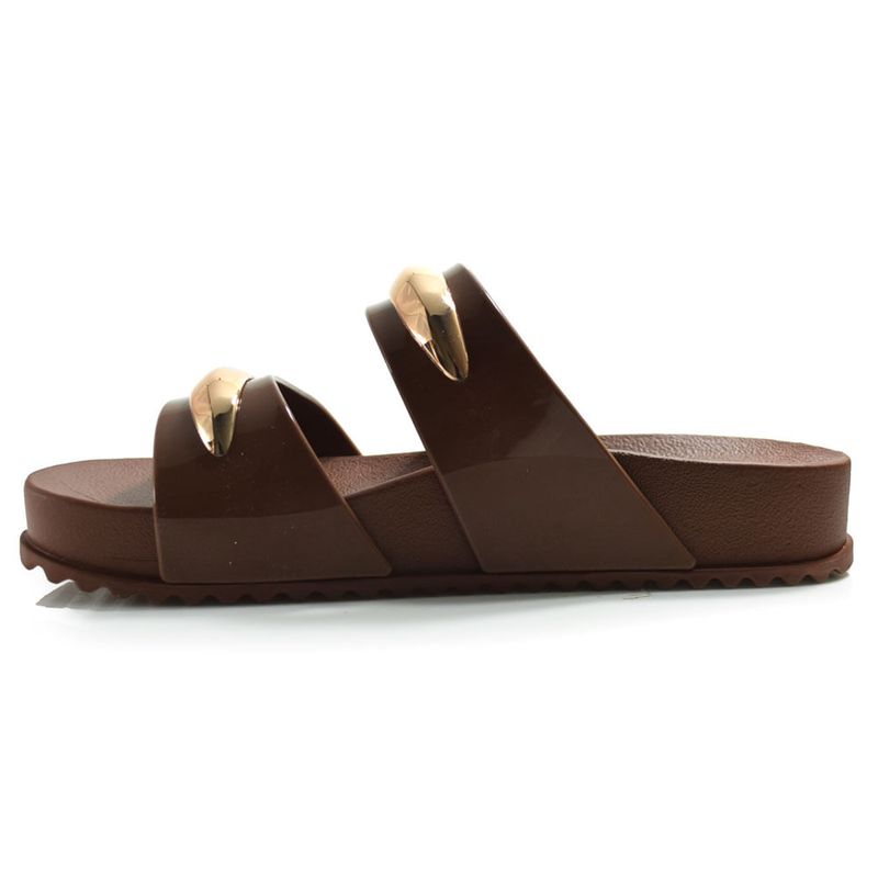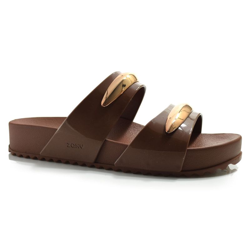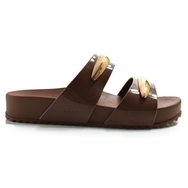 À Papete Marrom Feminina Zaxy é moderna e sofisticada. É uma papete que você não vai mais querer tirar do pé depois de comprar, pois é extremamente versátil e conforportável. Acrescenta um charme a mais em todos os looks com as aplicações douradas no cabedal. As tiras largas abraçam os pés com conforto e segurança, enquanto a sola supermacia garante aquele calce leve. Ref:19272