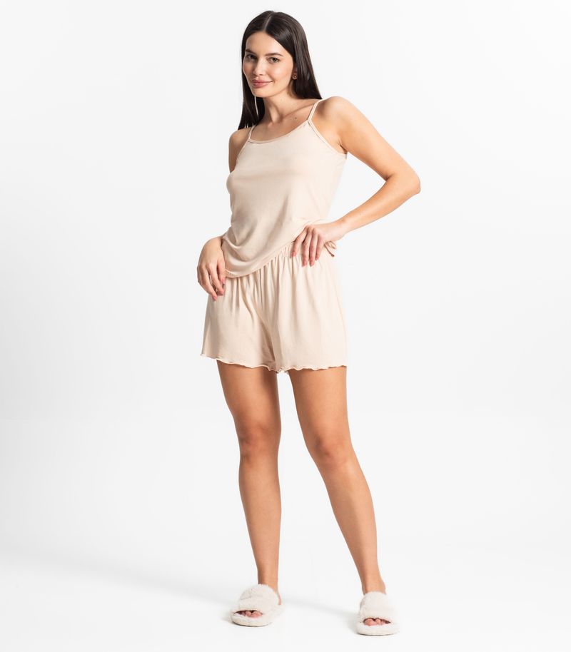 O pijama feminino de alças Select, feito em viscotorcion, é uma opção muito confortável. A blusa com alças finas em friso e acabamento em bainha oferece um ajuste leve e fresco, ideal para uma noite tranquila. O shorts, com elástico na cintura, garante conforto e praticidade, enquanto o acabamento em fru fru adiciona um toque delicado e feminino. É uma escolha perfeita para quem busca um pijama que combina conforto com um toque de charme.