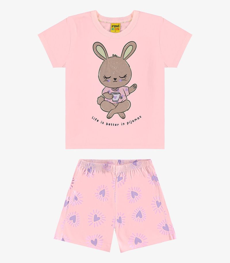 Pijama Infantil Feminino Meia Malha Rovi Kids Rosa
