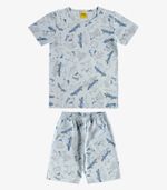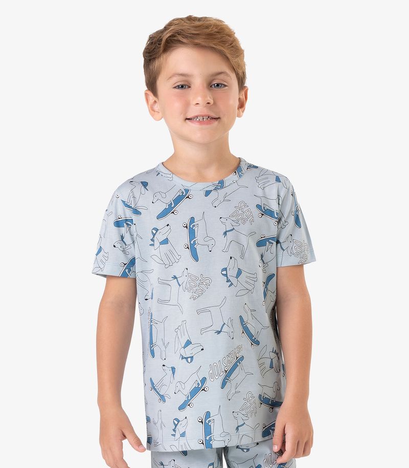 Pijama confeccionado em meia malha, leve e confortável, ideal para as noites de sono. A camiseta possui gola com acabamento em friso, estampa divertida na parte da frente e bainha com costura dupla nas mangas e na barra. O short tem estampa rotativa, cós com elástico embutido para melhor ajuste e bainha com acabamento reforçado. Um conjunto prático, macio e estiloso para garantir conforto e liberdade de movimento às crianças.