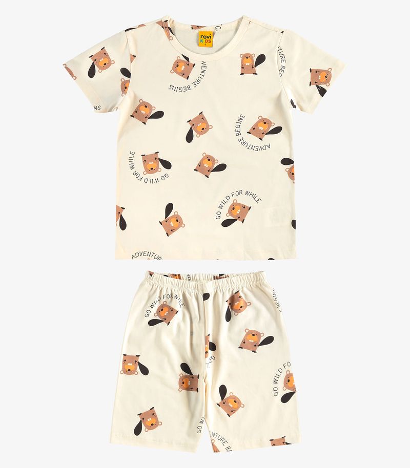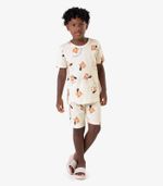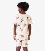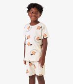 Pijama confeccionado em meia malha, leve e confortável, ideal para as noites de sono. A camiseta possui gola com acabamento em friso, estampa divertida na parte da frente e bainha com costura dupla nas mangas e na barra. O short tem estampa rotativa, cós com elástico embutido para melhor ajuste e bainha com acabamento reforçado. Um conjunto prático, macio e estiloso para garantir conforto e liberdade de movimento às crianças.