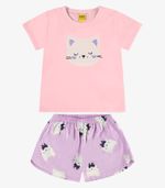 Pijama confeccionado em meia malha, leve e confortável, ideal para as noites de sono. A camiseta possui gola com acabamento em friso, estampa divertida na parte da frente e bainha com costura dupla nas mangas e na barra. O short tem estampa rotativa, cós com elástico embutido para melhor ajuste e bainha com acabamento reforçado. Um conjunto prático, macio e estiloso para garantir conforto e liberdade de movimento às crianças.