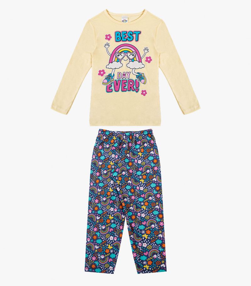 Pijama Menina Manga Longa Brilha No Escuro Kappes Amarelo