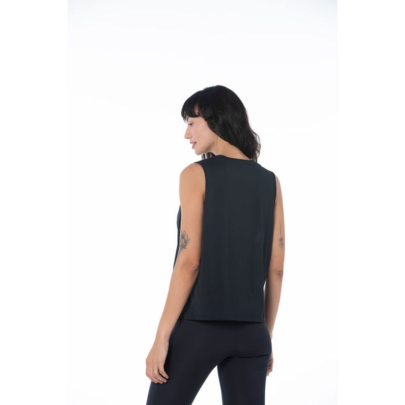 Regata em malha de poliéster com elastano. Modelagem cropped e com abertura lateral. Logo não refletivo.