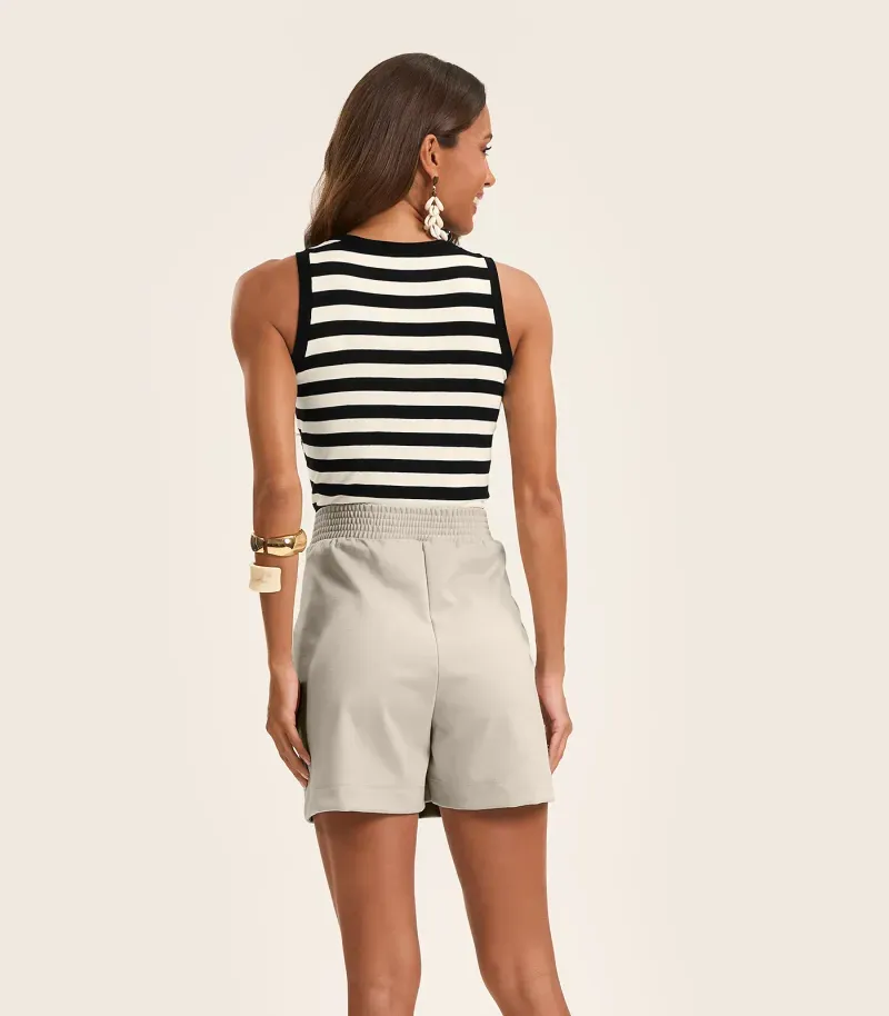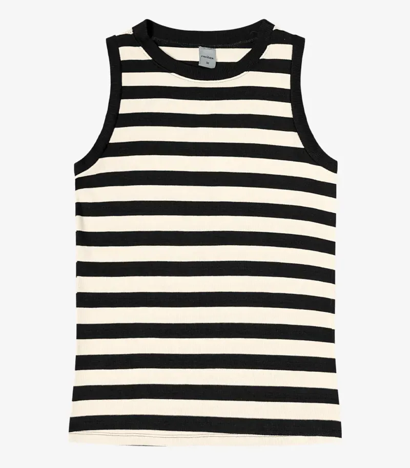 Regata Feminina Rovitex confeccionada em ribana de viscose com listras modernas, ideal para o dia a dia. Possui acabamento no decote e nas cavas com viés do mesmo tecido, garantindo conforto e bom caimento. A barra tem acabamento com costura dupla, proporcionando maior durabilidade e um visual clean. Versátil e fresquinha, é perfeita para compor looks casuais com muito estilo.
