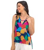 Regata Feminina Flores Rovitex. Desenvolvida em Viscose Slub, estampa rotativa floral, modelagem com comprimento assimétrico e recorte lateral. O toque de cor que faltava no seus looks do dia a dia.
