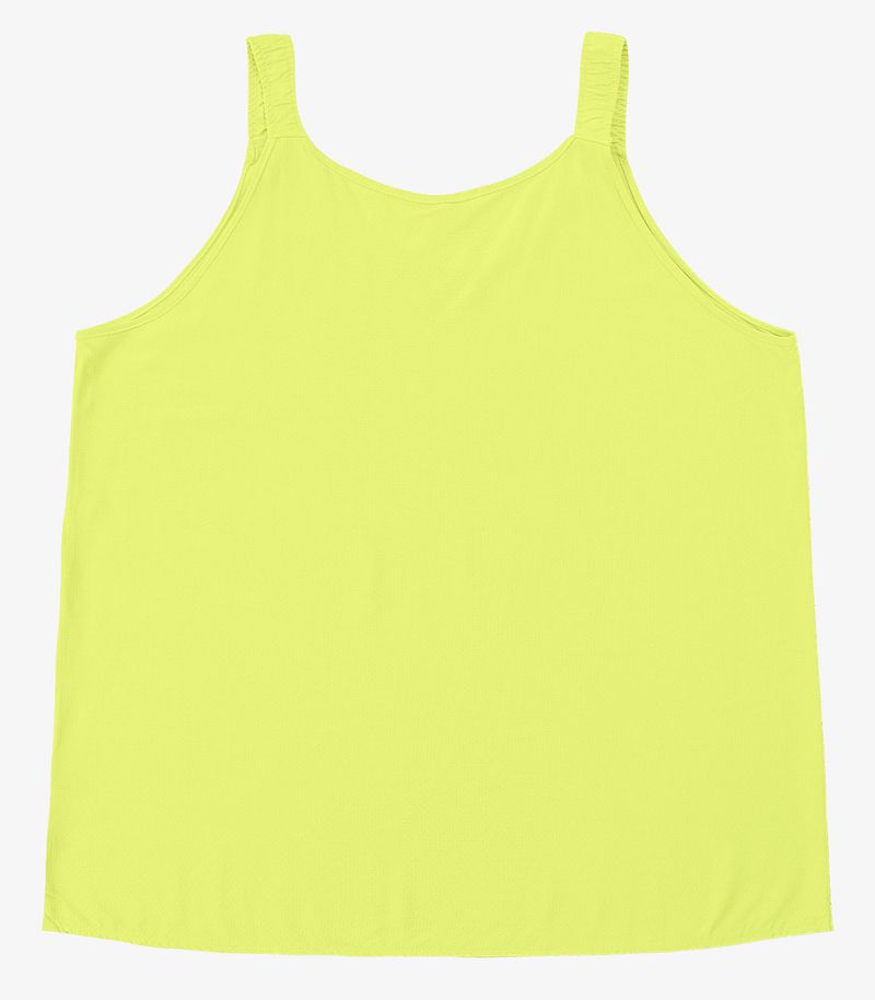 Regata Feminina Plus Size Infinita Cor, confeccionada em Tecido Viscose Vitória, com alças em fita de cetim e acabamento em elástico franzido. Possui decote amplo com friso e fita interna para sustentação, garantindo conforto e firmeza. As costas são lisas e o acabamento da barra conta com bainha delicada, com comprimento levemente acima do quadril. Leve, elegante e ideal para os dias mais quentes.