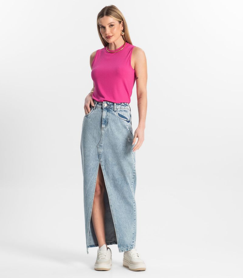 A regata confeccionada em ribana canelada é uma peça confortável e elegante. Com seu tecido macio e maleável, ela se ajusta perfeitamente ao corpo, valorizando a silhueta. A plaquinha de metal, um detalhe sofisticado, adiciona um toque de glamour à peça. Versátil, a regata pode ser combinada com diversas peças, desde calças jeans até saias mais sofisticadas, e é ideal para diversas ocasiões, desde um passeio no parque até um jantar elegante.