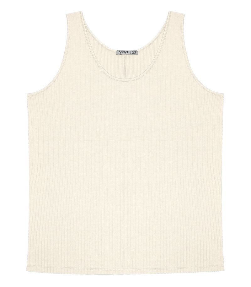 FemininoRoupasPlus SizeBlusaRegata Plus Size Em Ribana Canelada Secret Glam Bege