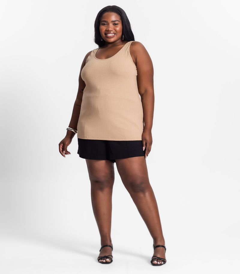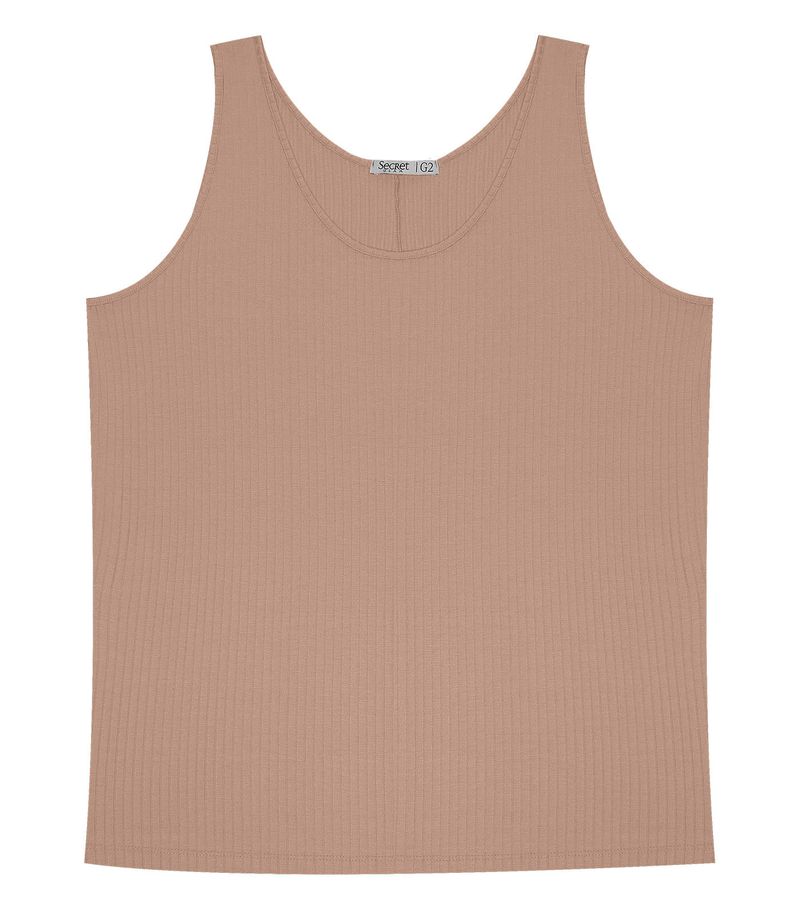 Regata Plus Size Em Ribana Canelada Secret Glam Marrom