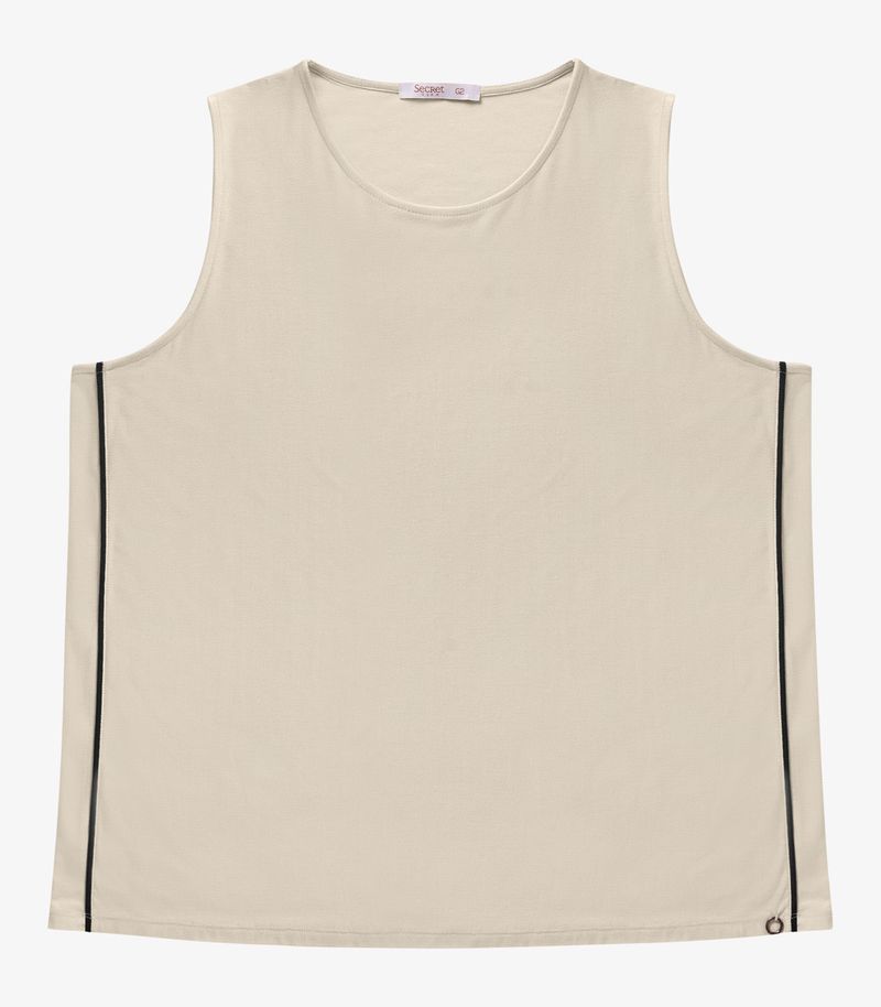 Confeccionada em Viscose Creponada, a Regata Plus Size Secret Glam oferece leveza e conforto para o dia a dia. Seu design moderno conta com decote redondo e um charmoso recorte lateral com filete contrastante na frente e nas costas, adicionando um toque de sofisticação e estilo à peça. Perfeita para compor looks versáteis e elegantes!