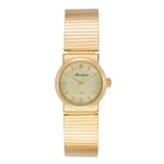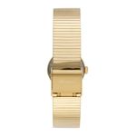 Com um design elegante, este relógio se destaca pela pulseira estilo bracelete em aço dourado, proporcionando um ajuste confortável e elegante no pulso. A caixa redonda de 23 mm em metal dourado combina com o mostrador champagne, que apresenta um efeito de aço escovado, e a marcação com index completo garante uma leitura prática.