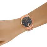 Salve família! A KondZilla fechou com a Mondaine e lançou a braba! Os relógios foram inspirados em todas as quebradas e pra quem só anda nos panos. Já escolhe o seu e marcha pro rolê. Este relógio analógico é um modelo com folheação rosé e caixa com detalhes em cristais. Seu destaque principal está no mostrador com efeito madrepérola em azul petróleo e vidro duplo com cristais internos, pedras e cifrão, que se movem de acordo com o movimento. Esse relógio possui a caixa em 4 cm de tamanho.