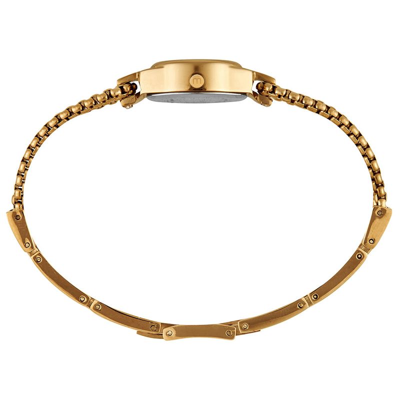 A pulseira de aço dourado confere um visual refinado e garante alta durabilidade à peça. O fecho em aço é prático e seguro para o uso constante. O relógio conta com fundo de pressão e resistência de 3 ATM, protegendo contra leves contatos com a água.