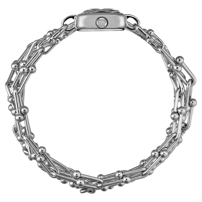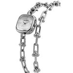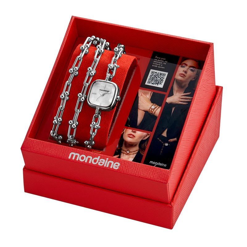 Este relógio prateado da Coleção My Way é um acessório versátil e elegante, projetado para complementar diferentes estilos. Com uma corrente longa, permite múltiplas formas de uso: pode ser usado no pulso, no pescoço ou até no cinto, adaptando-se ao seu estilo pessoal. A caixa quadrada com vidro facetado e o mostrador branco em madrepérola adicionam um toque de sofisticação, enquanto os cristais no terminal da caixa realçam seu brilho. A pulseira com elos diferenciados confere um design único. Adapta-se perfeitamente a todos os tamanhos de pulso, proporcionando um ajuste ideal e confortável para qualquer ocasião.