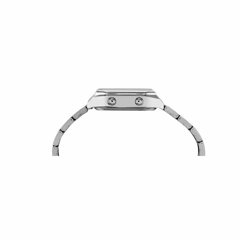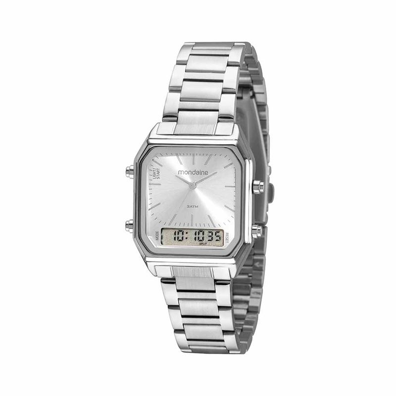 Com design vintage, este relógio é um modelo anadigi, ou seja, dispõe de duas formas para visualizar as horas, tanto analógica quanto digital! Possui caixa quadrada, botões acionadores laterais, folheação prata e pulseira em aço. Veste bem todos os tamanhos de pulso. Esse relógio possui a caixa em 3 cm de tamanho.