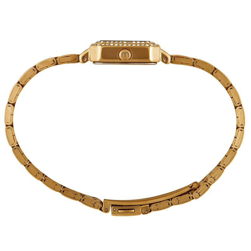 O Relógio Feminino Mondaine Quadrado é um acessório que exala luxo e delicadeza. Sua caixa quadrada de 24mm em metal dourado emoldura um deslumbrante mostrador em madrepérola, que reflete a luz de maneira única. A aplicação de cristais nos marcadores de horas, que mesclam números e indexes, adiciona um brilho extra e um toque de sofisticação.