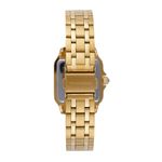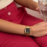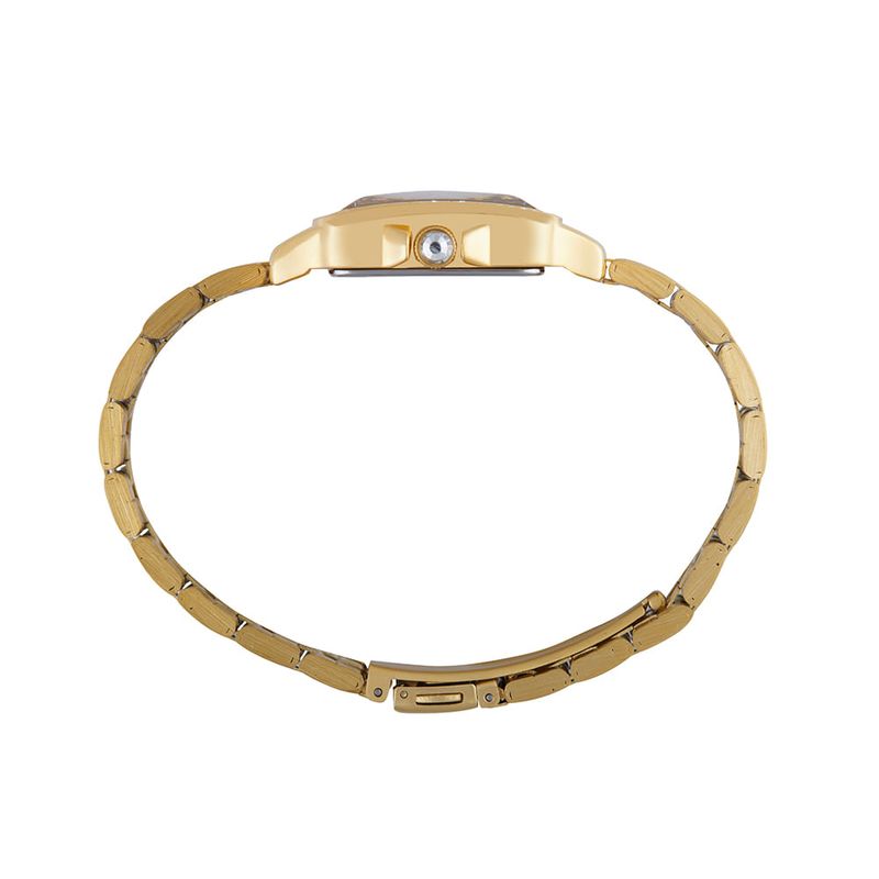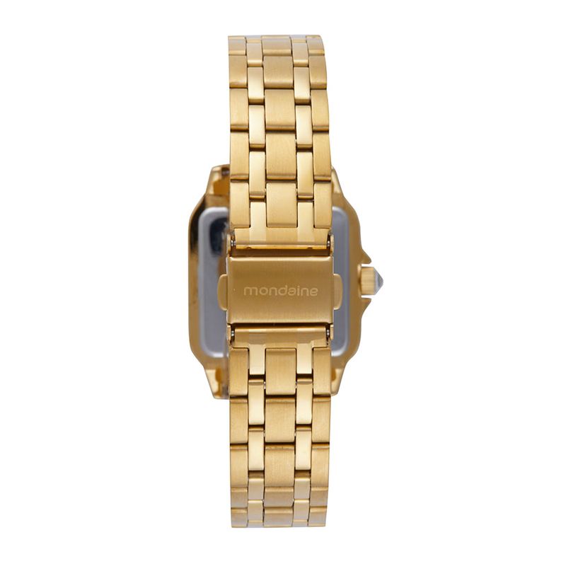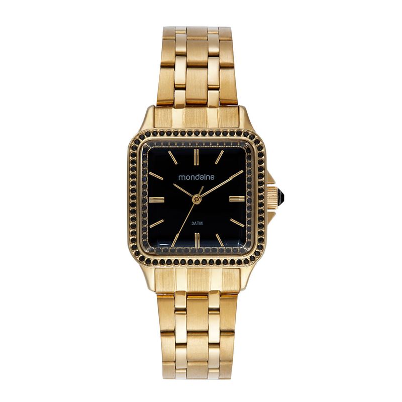 Este relógio analógico dourado em formato quadrado é um símbolo de moda. Com vidro facetado que realça seu design, a caixa apresenta cristais cravados que adicionam um toque de brilho, complementados por cristais no interior do vidro. O mostrador, com um efeito metálico deslumbrante, é complementado por um detalhe em pedra na coroa, conferindo ainda mais charme à peça. Medindo 3 x 3,8 cm, a caixa se adapta perfeitamente a todos os tamanhos de pulso, garantindo um ajuste ideal para pulsos finos e delicados