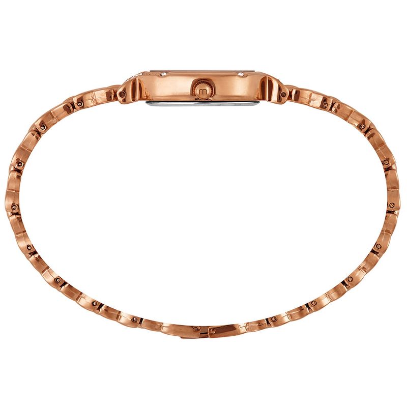 A pulseira de metal Rose Gold confere um visual moderno e muito sofisticado à peça. O fecho em aço garante um ajuste seguro e prático para o uso diário. Este modelo conta com fundo de pressão e resistência à água de 3 ATM.