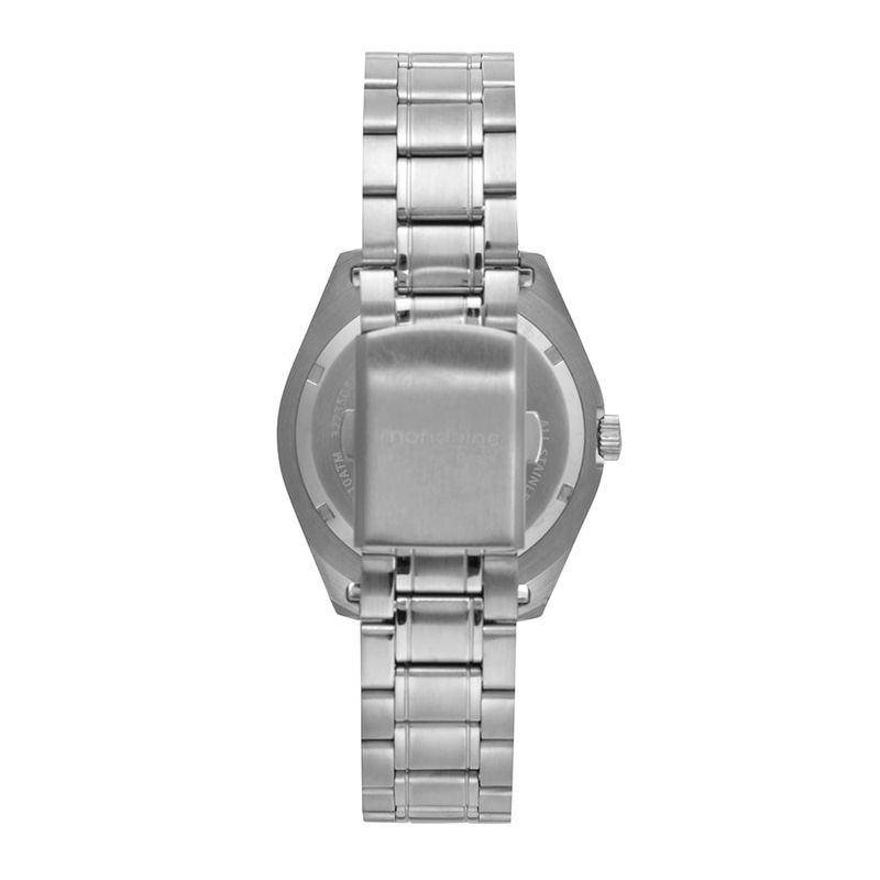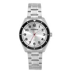 Fácil de combinar, este relógio de estilo casual é todo em aço, tornando-o uma escolha versátil para qualquer ocasião. Tem folheação cromada, marcações na catraca e numeração completa, garantindo praticidade e estilo. Com uma caixa em metal de 4,2 cm de diâmetro, oferece um ajuste perfeito em todos os tamanhos de pulso. Sua pulseira é trabalhada em aço escovado, com frisos polidos entremeados, e equipada com um prático fecho de acionamento lateral para ajuste fácil e seguro.