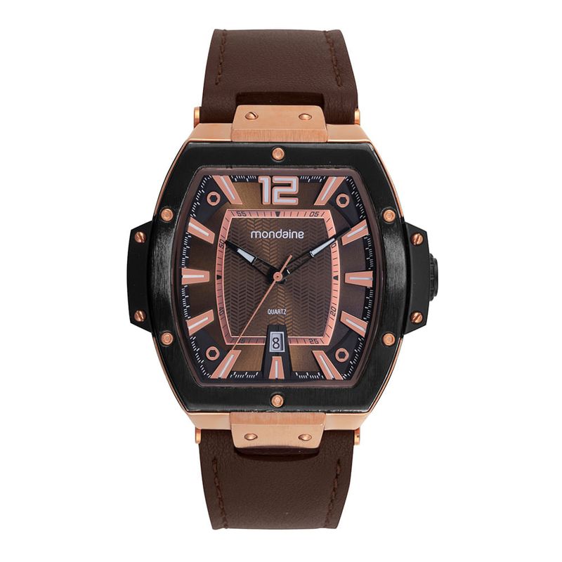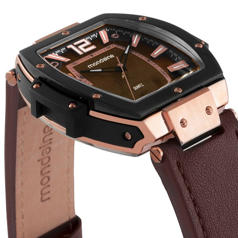 O Relógio Feminino Mondaine apresenta um design único e elegante, com sua caixa oval de 42mm em metal marrom. O mostrador, também em marrom, possui a funcionalidade de calendário e marcadores com números e index, facilitando a leitura das horas. Seu mecanismo analógico garante precisão e um toque clássico.