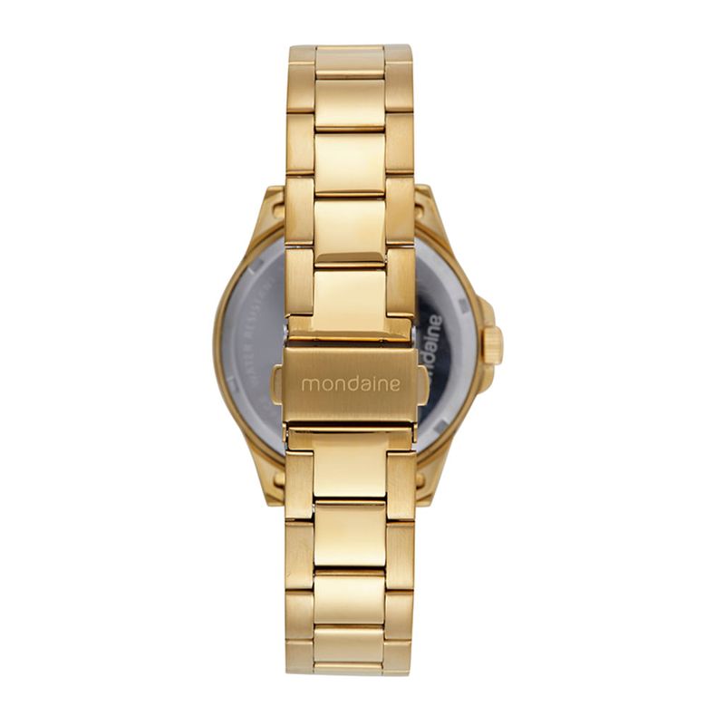 Este relógio analógico estilo casual apresenta um mostrador azul marinho que contrasta com a folheação dourada. Tem uma pulseira de aço e fecho de acionamento lateral, e caixa em metal, com 4,2 cm de diâmetro, adapta-se confortavelmente a todos os tamanhos de pulso, proporcionando um ajuste ideal, especialmente para pulsos médios e maiores.