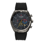 Com caixa de 46 mm em metal com acabamento chumbo, o modelo impressiona pelo visual moderno e marcante.