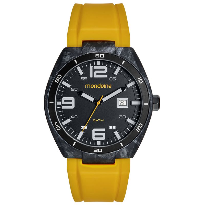 Combinando esportividade e ousadia, este relógio masculino traz pulseira em silicone amarela com pinos de parafuso, garantindo estilo único e visual vibrante.