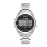 Este relógio digital combina praticidade e estilo em um único acessório. Equipado com um visor LCD positivo de fácil visualização, ele oferece funcionalidades como alarme, soneca, cronômetro, contagem regressiva e luz de fundo, proporcionando versatilidade para o dia a dia. A caixa em metal cromada, com 4,4 cm de diâmetro, confere um visual moderno e robusto. Sua pulseira em aço, com fecho de acionamento lateral, é ajustável e se adapta perfeitamente a todos os tamanhos de pulso, garantindo conforto e um ajuste seguro. Ideal para quem busca funcionalidade com um toque clássico.