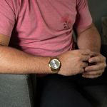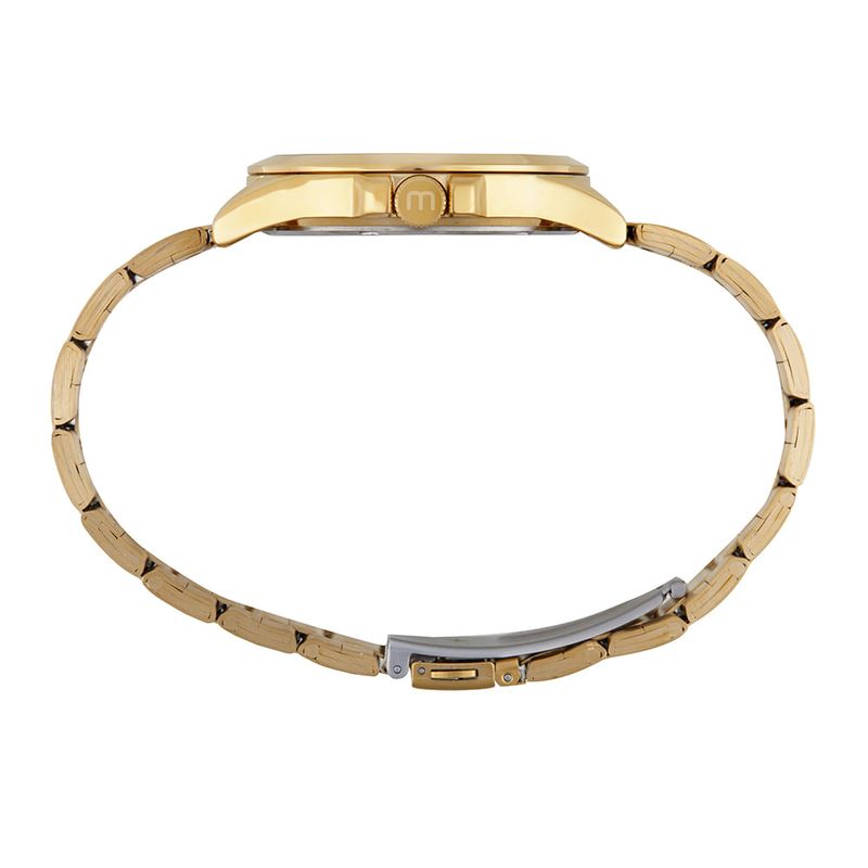 Este relógio analógico estilo casual apresenta um mostrador azul marinho que contrasta com a folheação dourada. Tem uma pulseira de aço e fecho de acionamento lateral, e caixa em metal, com 4,2 cm de diâmetro, adapta-se confortavelmente a todos os tamanhos de pulso, proporcionando um ajuste ideal, especialmente para pulsos médios e maiores.