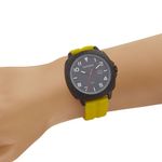 Com estilo esportivo, este relógio analógico é um modelo confortável e moderno. Tem caixa em metal com marcação externa, mostrador brilhoso com efeito areia e pulseira de silicone amarela, que se destaca e é o grande diferencial. Ainda conta com função calendário. Esse relógio possui a caixa em 4,6 cm de tamanho.