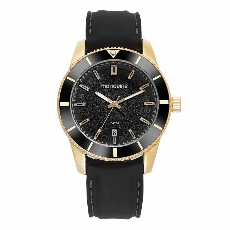 Este relógio analógico com calendário esportivo une conforto e estilo. Conta com caixa dourada em metal e mostrador texturizado. A pulseira de silicone é muito confortável, possui fecho fivela além dele ter um ótimo caimento para pulsos maiores. Esse relógio possui a caixa em 4,8 cm de tamanho.