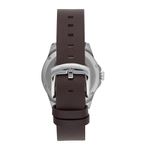 A pulseira de couro legítimo na cor marrom confere um toque de estilo social e conforto para o uso diário. Com resistência à água de 5 ATM, o relógio é seguro contra respingos e chuvas leves. O fundo do tipo pressão garante a proteção do mecanismo interno.