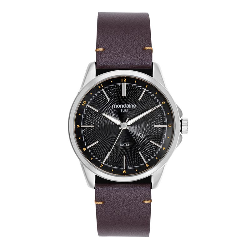 O Relógio Masculino Mondaine apresenta uma caixa de metal de 40mm com um elegante mostrador preto. Seu design redondo e clássico é complementado por um visor analógico com calendário, que exibe o dia do mês. Os marcadores em index completo asseguram uma leitura de horas clara e sofisticada.