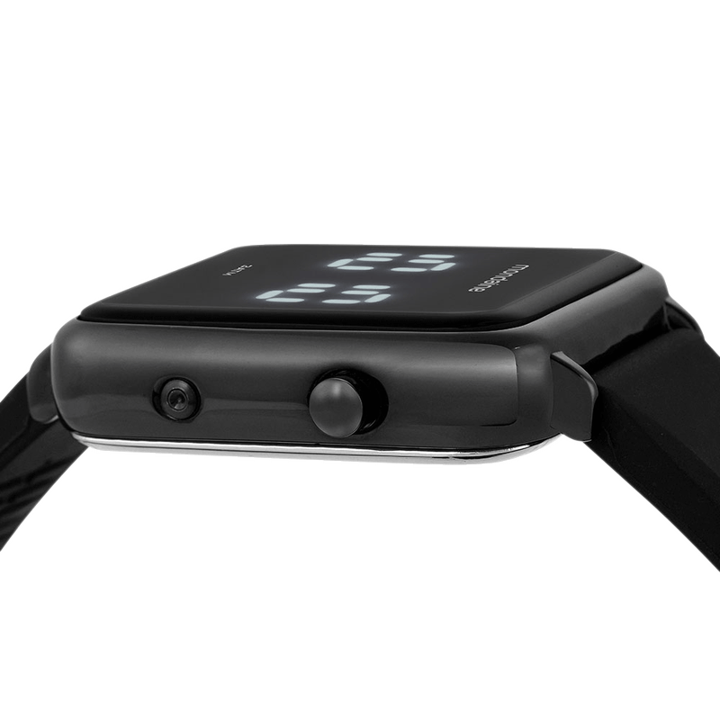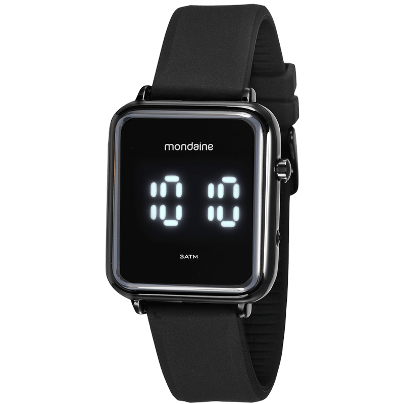 Todo preto este relógio possui função digital e visor LED branco. Com design quadrado e bordas arredondadas tem aro do visor metalizado. A pulseira de silicone tem fecho fivela, ajustando facilmente ao punho. Traz modernidade para o visual transitando entre o social e o casual. Esse relógio possui a caixa em 3,7 cm de tamanho.