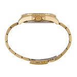 Este relógio analógico casual com calendário é uma peça de estilo e funcionalidade. Sua catraca serrilhada, adornada com marcações precisas, destaca-se em um design elegante. Com uma folheação dourada que complementa seu visor escuro, este relógio apresenta marcadores numéricos e geométricos, e caixa em metal com diâmetro de 4,8 cm, proporcionando um ajuste confortável em pulsos de todos os tamanhos. A pulseira, trabalhada em aço escovado, apresenta detalhes polidos que adicionam um toque de sofisticação. O fecho de acionamento lateral permite um ajuste simples e preciso, garantindo conforto durante todo o dia.