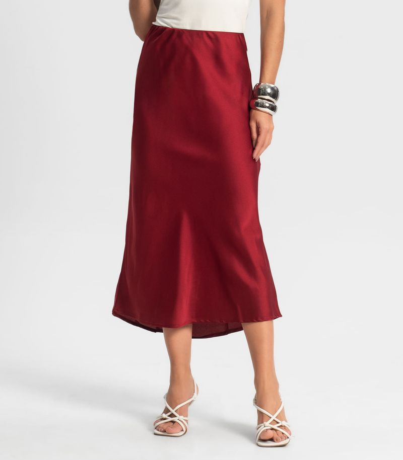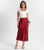 Saia Feminina Midi Acetinada Style Box Vermelho