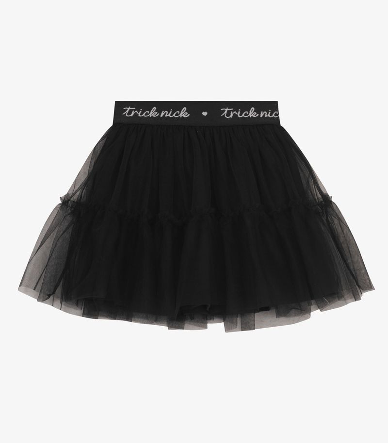 Saia Infantil Trick Nick confeccionado em Tule e Meia Malha, leve e delicado. Possui babado embutido no forro, com acabamento franzido que dá charme à peça, além de contar com um elástico personalizado. A barra tem bainha fina que valoriza o caimento. Ideal para ocasiões especiais com muito estilo e conforto.