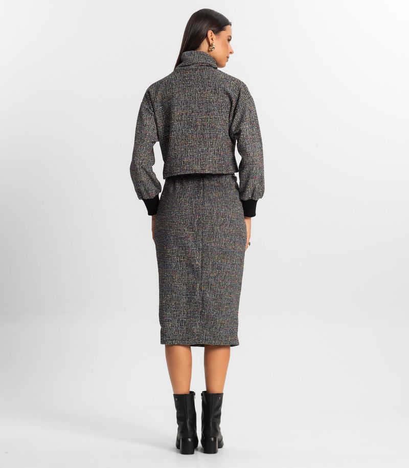 A Saia Midi Feminina Rovitex, confeccionada em Malha Tweed, combina sofisticação e conforto em um design elegante. Seu cós talhado duplo oferece um ajuste impecável, com elástico liso na parte frontal para um caimento estruturado e cós duplo rebatido nas costas, garantindo flexibilidade e conforto ao vestir. Com comprimento midi, é perfeita para composições modernas e versáteis, trazendo um toque refinado ao look.