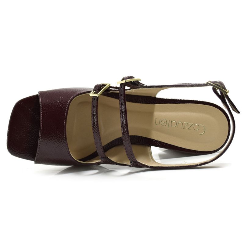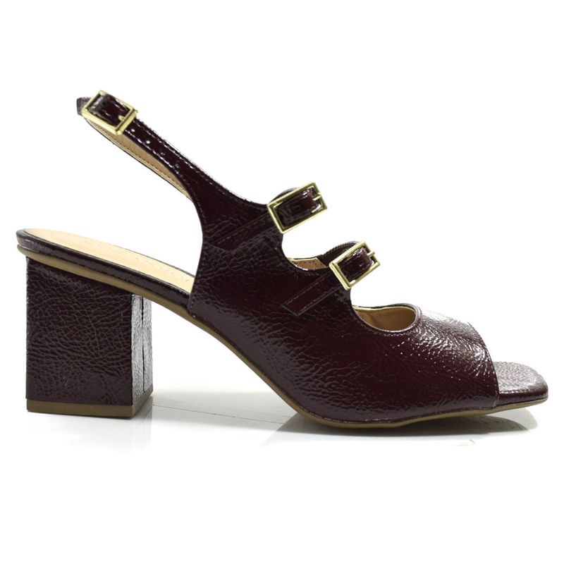 Sandália de Salto Bloco Feminina Cazzualen, confeccionada em verniz sintético, com palmilha em EVA e solado de borracha. Essa sandália é elegante, moderna e chique. Ideal para ocasiões que deseja arrasar com um bom salto confortável. Salto: 7cm. Coleção: Outono/Inverno 2025. Aproveite e compre online. Ref: 74151.