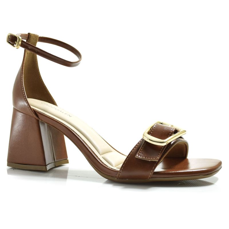 Sandália de Salto Bloco Feminina Cazzualen, confeccionada em material sintético, palmilha em EVA, solado de borracha e detalhe de fivela. Essa sandália é elegante, moderna e versátil. Ela pode ser usada tanto em ocasiões casuais quanto sociais, para quem curte um look mais discreto. Salto: 7cm. Coleção: Primavera/Verão 2026. Aproveite e compre online. Ref: T6030-125.