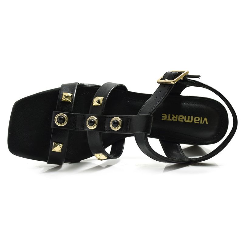 Sandália de Salto Bloco Feminina Via Marte, confeccionada em material sintético, aplicações metalizadas no cabedal, palmilha em EVA e solado de borracha. Essa sandália é elegante, confortável e moderna, sendo ideal para compor looks cheios de estilo e personalidade. Salto: 6cm. Coleção: Atemporal. Aproveite e compre online. Ref: 171-035-01.