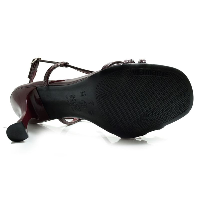 Sandália de Salto Feminina Via Marte, confeccionada em verniz sintético com detalhe em aplicação metalizada e solado de borracha antiderrapante. Essa sandália é elegante, moderna e cheia de estilo. Ideal para quem não dispensa um salto de luxo, seja em ocasiões casuais ou sociais. Salto: 9cm. Coleção: Primavera/Verão 2025. Aproveite e compre online. Ref: 149-025-01.