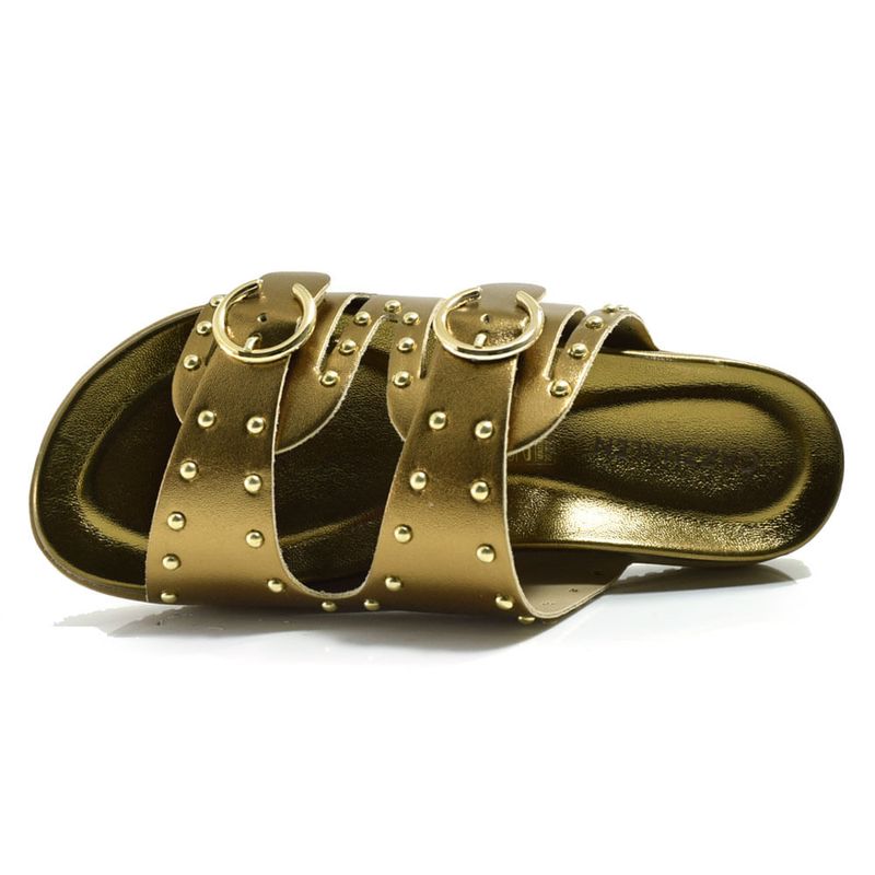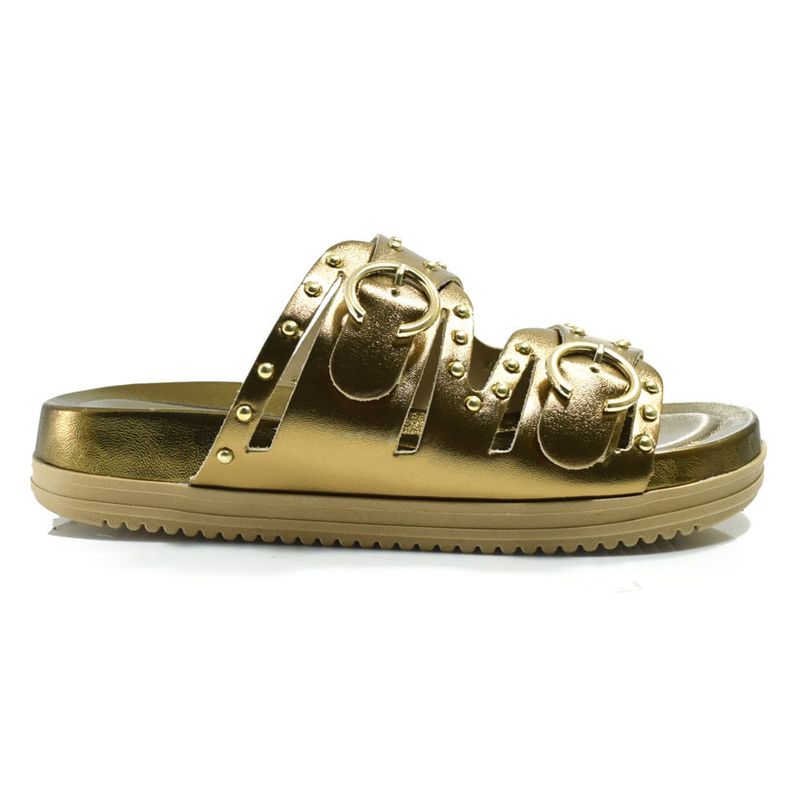 Sandália Flat Feminina Cazzualen, confeccionada em material sintético metalizado, detalhes em aplicações e fivela, fácil calce e solado de borracha. Essa sandália é moderna, versátil e despojada, ideal para compor looks cheios de estilo e personalidade. Coleção: Atemporal. Aproveite e compre online. Ref: 40127/100.