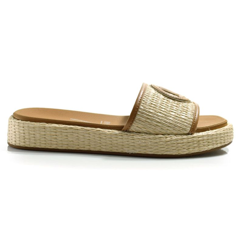 A Sandália Flat Feminina Vizzano possui plataforma confeccionada em material sintético com acabamento que remete a palha natural trançada, uma escolha charmosa e versátil para os dias mais quentes. O cabedal possui uma aplicação decorativa que traz um toque a mais, além disso a plataforma garante leveza e estabilidade. É o sapato ideal para passeios ao ar livre, encontros informais, viagens e momentos de lazer.