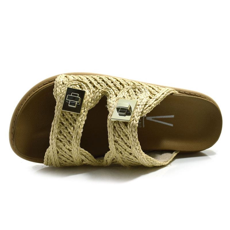 Sandália Flat Feminina Vizzano, confeccionada em material sintético, palmilha em EVA e solado de borracha. Com o estilo palha ela deixa qualquer look estiloso e despojado. Ideal para ocasiões que deseja estar confortável e arrumadinha. Coleção: Primavera/Verão 2025. Aproveite e compre online. Ref: 6510.119.30367