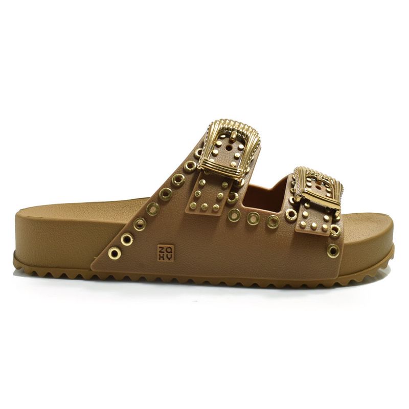 Sandália Flat Feminina Zaxy Hold, confeccionada em PVC expandido com detalhes em aplicações metalizadas e solado de borracha. Essa sandália é versátil e ideal para compor looks de uso diário, como por exemplo um piquenique no parque, um passeio a ceu aberto, entre outros. Coleção: Atemporal. Aproveite e compre online. Ref: 19069.