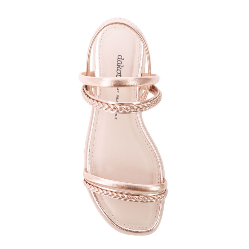 A Sandália Flatform Dakota é a escolha perfeita para quem busca um calçado confortável e estiloso. Confeccionada em material alternativo metalizado de alta qualidade, possui um design moderno e minimalista. Este modelo se destaca pelas suas tiras finas e tranças sobre o pé, que criam um visual único e cheio de personalidade. Sua palmilha costurada e macia oferece maior conforto e a tira elástica no calcanhar permite um calce fácil e prático. O solado Flatform de borracha antiderrapante, garante conforto para usar a sandália durante todo o dia. Ideal para complementar looks em diversas ocasiões. Adquira já a sua!