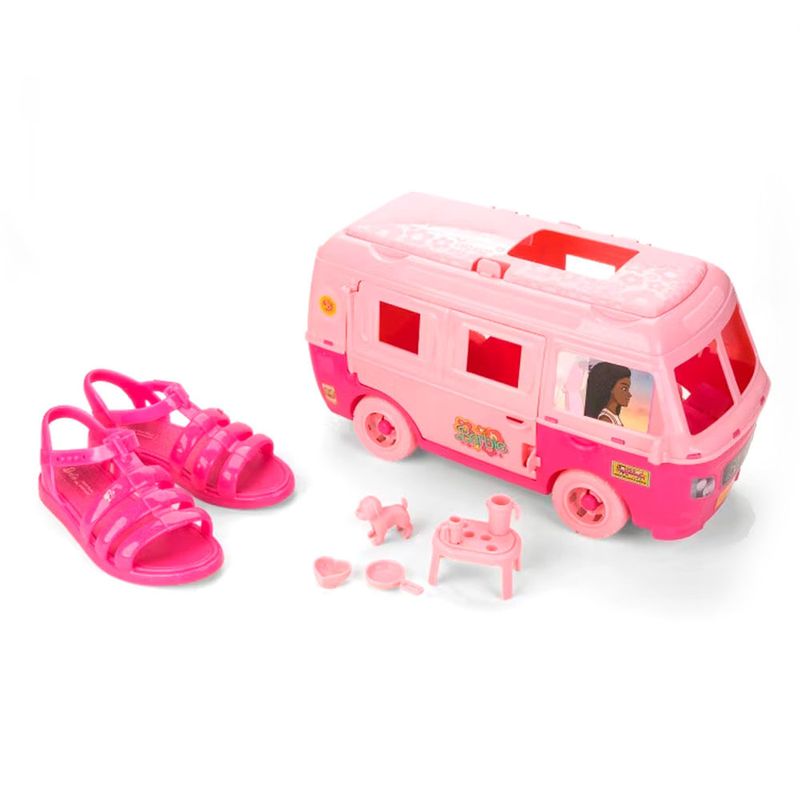 Sandália Infantil Grandene Barbie Road Trip do 25 ao 33, confeccionado em PVC expandido, essa sandália além de fofa e confortável, acompanha diversão com um motorhome e acessórios e rodas funcionais. Coleção: Primavera/Verão 2025. Aproveite e compre online. Ref: 23071.