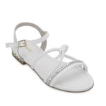 Detalhe: Tiras macias cruzadas e uma com aplicações de strass.